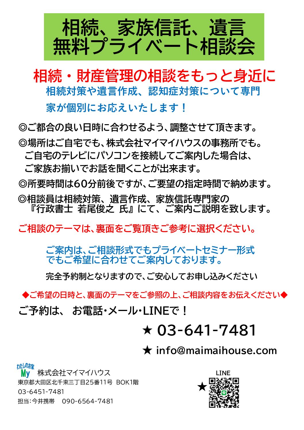 相談員は相続対策、遺言作成、家族信託専門家の『行政書士』にて、ご案内ご説明をさせて頂きます。